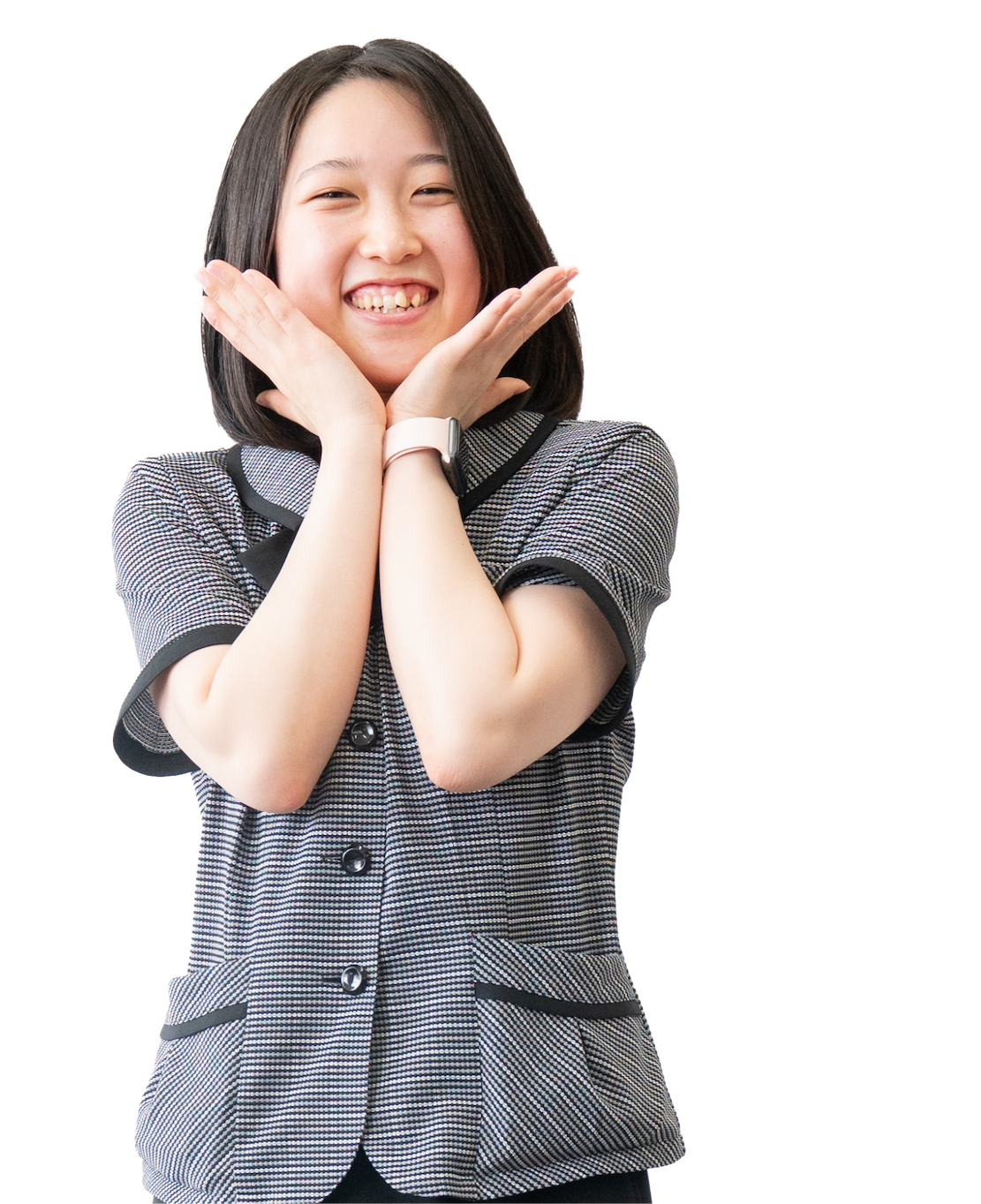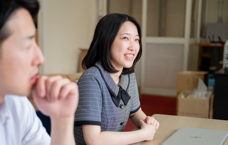 受付業務課で、主に電話、来客対応、データ入力などの事務作業をしています。気配りとマナー、丁寧さが大事だと思っているので、意識しながら作業しています。最近はSNSも担当させていただいているので、日々の情報発信も頑張っています。